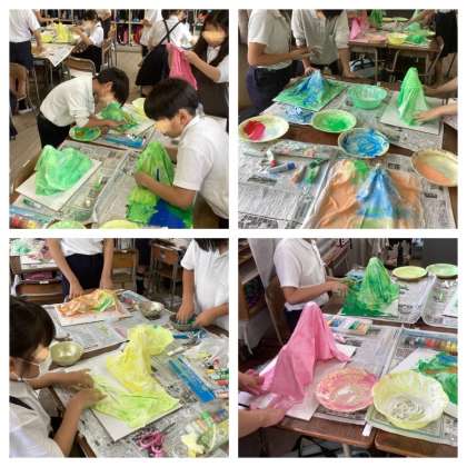 図画工作科では「どろどろカッチン」という液体粘土を使った立体工作に取り組んでいます。