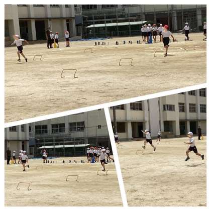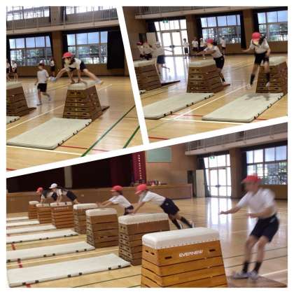 歩幅を意識してリズムよくハードル跳んだり、「タン(踏切)トン(着手)パッ(開脚)」を意識して跳び箱を跳んだりと熱心に練習する姿がありました。