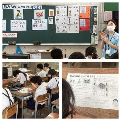 今日は4年2組で「飲みものについて考えよう」の学習をしました。