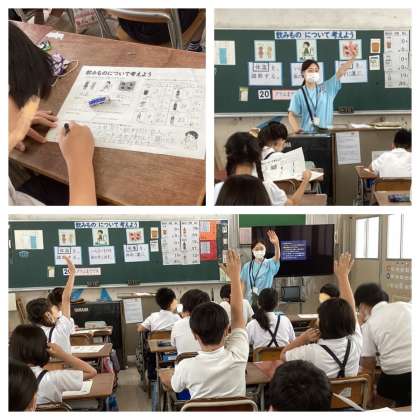 先週より栄養教諭による「食に関する指導」が各教室で行われています。