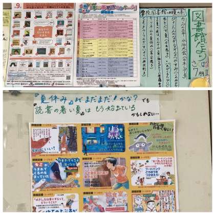 さくはな図書館(図書室)の前には、学校司書のぴよちゃん作成の「図書館だよりさくはな」が掲示されています。