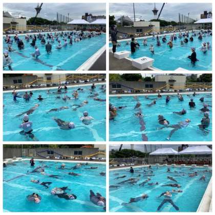 長袖・長ズボン・講堂用シューズを身にまとい、プールの中へ。