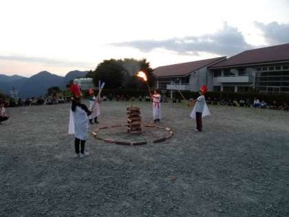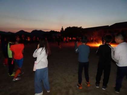 5年 キャンプファイヤー 公開日 2023/07/21 更新日 2023/07/21 5年 入浴後、キャンプファイヤーを行いました。 校長先生が火の神役を演じ、点火のセレモニーを行った後、先生やクラスの出し物で楽しみました。 終盤には、先生の出し物のアンコールも飛び出し大いに盛り上がりました。 最後に、消えゆくファイヤーを見つめながら歌ったり、満天の星空を眺めたりして、キャンプファイヤーを終えました。 林間学習1日目のホームページの更新は以上とさせていただきます。 いいね(0)