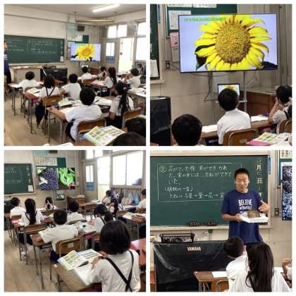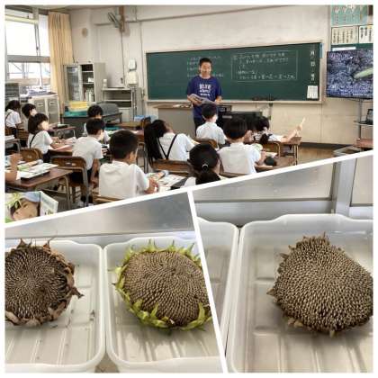 学習園で育ったひまわりの実や種を間近で観察もしました。