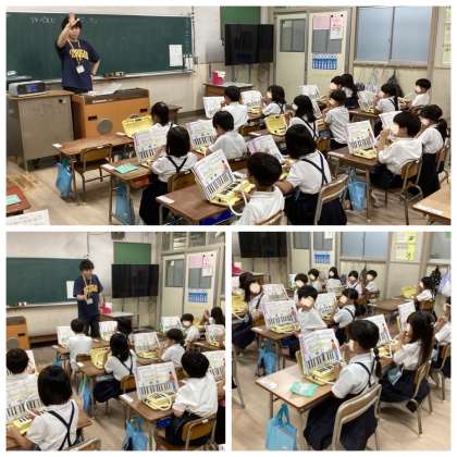 1年生は音楽科の学習で、鍵盤ハーモニカの練習をしています。
