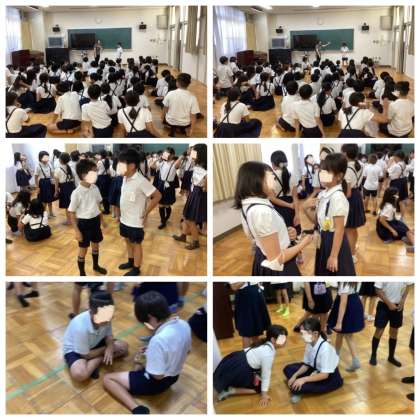 4年 仲を深めよう!(9/15) 公開日 2023/09/15 更新日 2023/09/15 4年 1週間の最後の学習は「仲間づくり」 1組と3組が合同で仲を深めるゲームをしました。 1番盛り上がったのは、「自己紹介ゲーム」 自分のことを4つ紹介しますが、そのうち1つに嘘を交えます。その嘘は何かを見破るゲームです。相手の紹介をよく聞き、しっかり考えなければ見破ることができません。 ゲームを楽しみながら友だちのことも知ることができ、仲が深まりましたね! いいね(0)