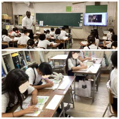 3・4年生の外国語活動は、隔週でフランク先生と学習しています。
