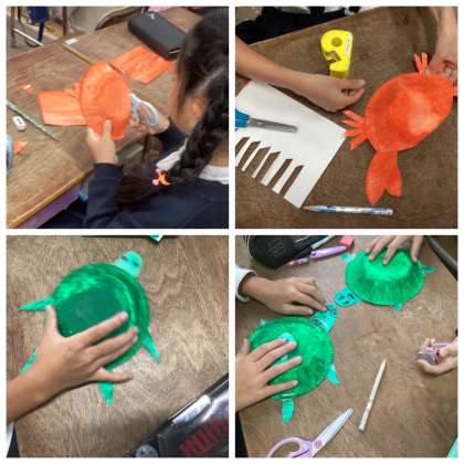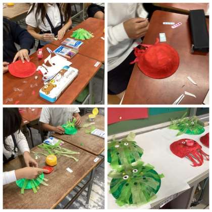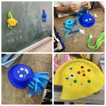 2年生が図画工作科の時間に海の生き物を制作していました。
