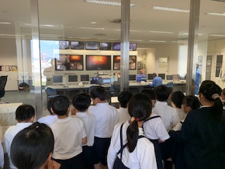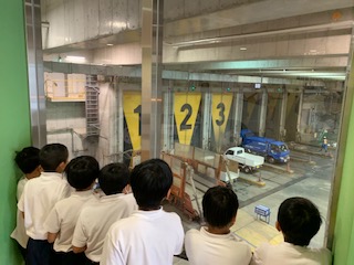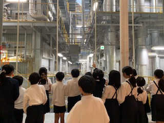 排ガス処理の施設、工場の心臓部にあたる中央制御室、ゴミ収集車がゴミを預けるプラットホームを見学している様子です。
