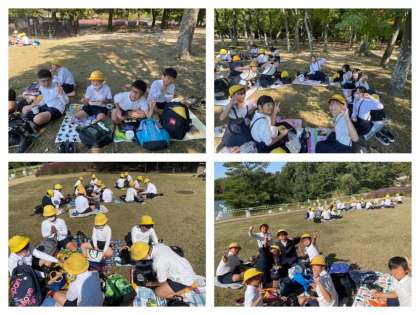 5年 遠足 その4(10/26) 公開日 2023/10/26 更新日 2023/10/26 5年 朝が早かったので、少し早いランチタイムとなりました。 青空のもと食べるお弁当は最高です♪♪ お弁当の用意、ありがとうございました。 いいね(0)