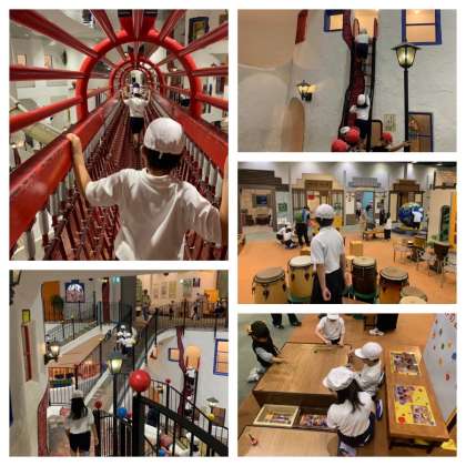 館内での活動が始まりました。 グループごとに協力して回っています。