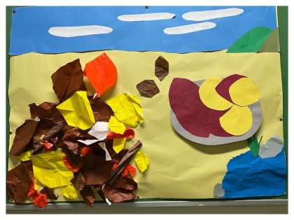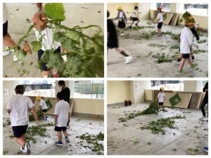 いもほりの代わりに…いものつるを使っての創作活動をしました。
