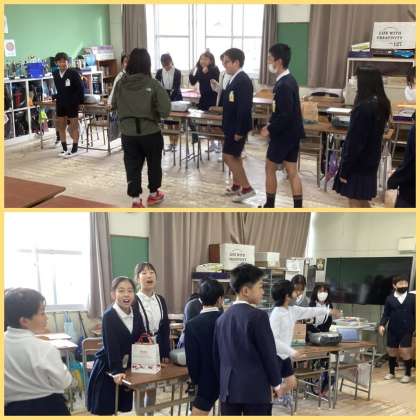 1組のお店は「あたまおしりゲーム」、2組のお店は「海のいのち」、3組の店は「ハートを読め」でした。