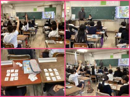 4年 アルファベット!(12/4) 公開日 2023/12/04 更新日 2023/12/04 4年 フランク先生との外国語活動は4年生でした。 アルファベットの小文字を覚える学習です。 小文字のカードを使って「ビンゴ」をしました。もちろん英語で会話をしながらです。 リーチになったりビンゴになったりすると教室に歓声が響き、大盛り上がりでした。 いいね(0)