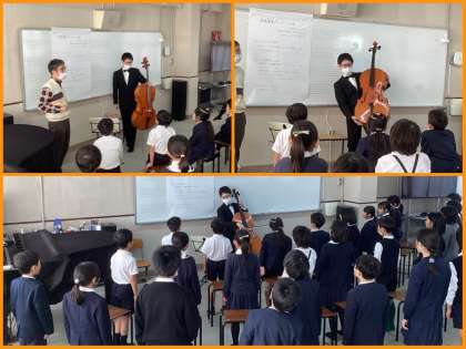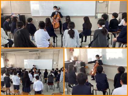 ゲストティーチャーをお招きして「チェロ」の音楽鑑賞をしました。