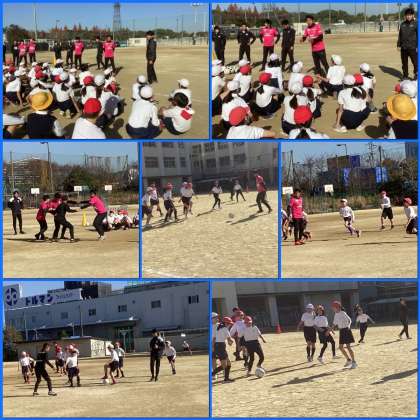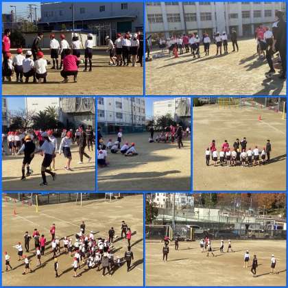 区役所の「夢・未来創造事業」の取組で、セレッソ大阪のコーチの方にサッカー教室をしていただきました。