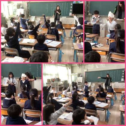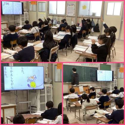 国語科「おとうとねずみチロ」の学習で、役割読みに挑戦している1年生。