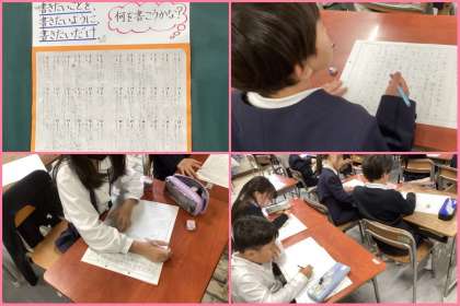 2年生が「あのねちょう」ではなく「作文用紙」に作文を書いています。