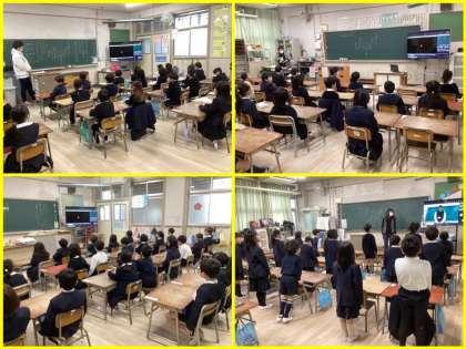 始業式の最後に校歌を歌います。 1年生の教室から、元気よく歌う声が聞こえてきましたよ〜。