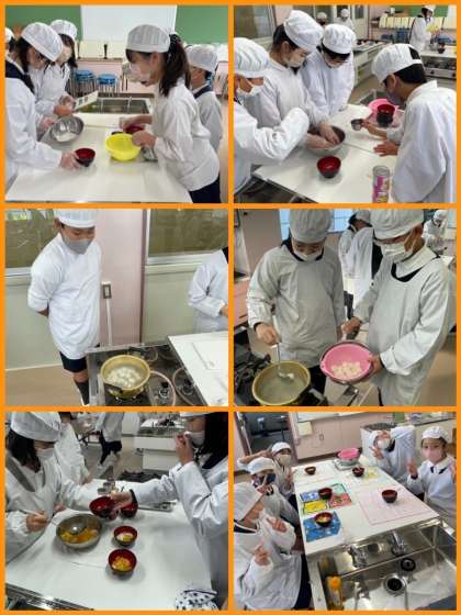 5年 調理実習その1(1/22) 公開日 2024/01/22 更新日 2024/01/22 5年 「フルーツ白玉だんご」の調理実習をしました。 美味しいだんごは水の配分が要です。 白玉粉をこねながら、慎重に水を加えて程よい硬さのだんごができました!! 今回はフルーツもりもりの白玉だんご。 15時のおやつ!?として美味しくいただきました。 いいね(0)