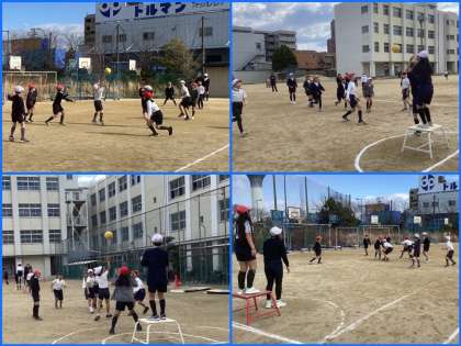 4年生がなわとびや持久走、ポートボールの学習をしていました。