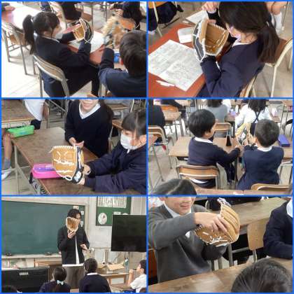 野球好きな友だちが使い方を教えていたり、手にはめた姿を見せ合ったり…。グローブに興味津々な様子でした!!