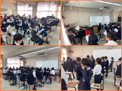 音楽科では、通常の学習に加えて、3月1日(金)に行われる卒業お祝い集会の歌の練習をしています。
