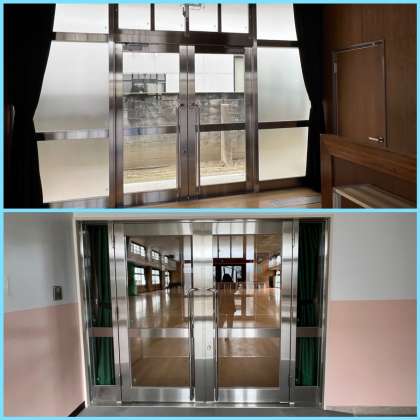 窓もドアもピッカピカ!! 講堂が生まれ変わりました♪