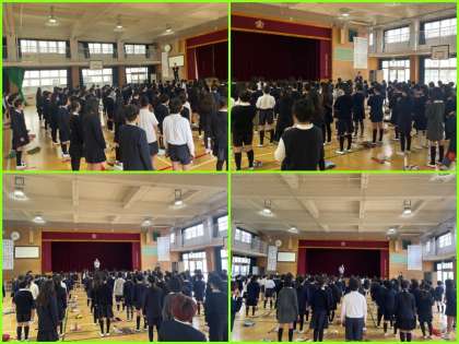 3月1日(金)の卒業お祝い集会に向けて、どの学年も6年生への贈り物の練習をしています。