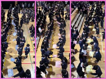 5年生がたてわり班で作成したメッセージカードをプレゼント↑↑↑
