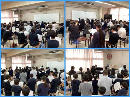 音楽科の学習で「たいせつなもの」という曲を歌いました。今日が初めて…とは思えないくらい、音程をしっかりとって声を響かせて歌っていました♪