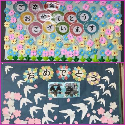 卒業をお祝いした華やかな掲示板を紹介します♪