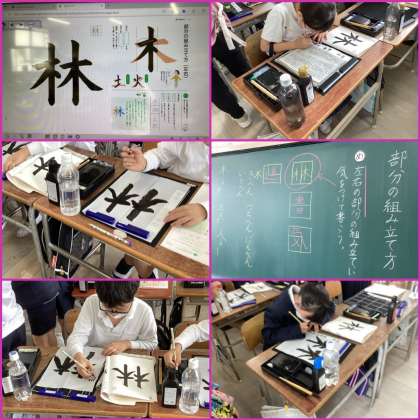 「林」という字を左右の組み立てを意識して書きました。