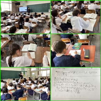 国語科では「メモを取りながら話を聞こう」を学習しています。