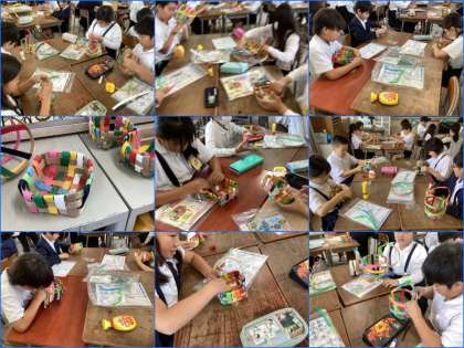 4年 つないで組んで、すてきな形(5/17) 公開日 2024/05/17 更新日 2024/05/17 4年 4年生が図画工作科の学習で制作しているのは…かご作り! とても器用に編んでいます。 かごが「ぼうし」のアレンジされたり… 色合いにもごだわって素敵な作品が出来上がっています。 いいね(0)