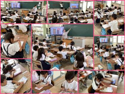 今日から算数ノートを使っての学習です。黒板に書いた先生の文字をしっかり見て、ノートに書きました。