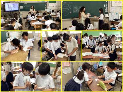 5年 What subjects do you like?(6/20) 公開日 2024/06/20 更新日 2024/06/20 5年 外国語では「好きな教科をたずね合おう」の学習をしました。 友だちにたずね合う活動をしながら、ビンゴゲームもしました。 今日から、アメリカからの体験入学の友だちが来ています。ネイティブの英語を聞きながら、楽しく交流することができました。 いいね(0)