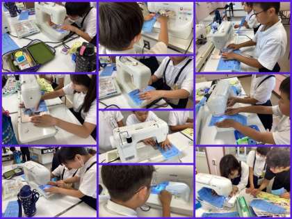 手縫いの学習と平行して、ミシンの学習も始まりました。ナップザックを作って林間学習で使用するためです。初めてのミシンで「ヘルプ!!」の声が絶えませんでしたが、友だちと協力し合って頑張る姿もたくさん見られました。作ったナップザックを背負って、林間学習に行けるように、がんばりましょう♪
