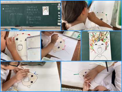 4年生は図画工作科で様々な技法を学んでいます。今回は「吹き流し」
