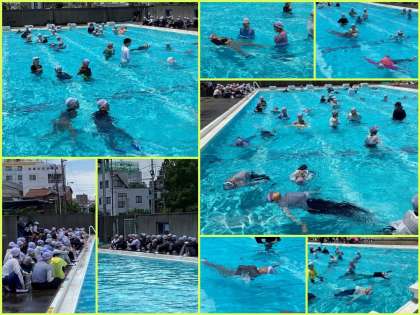 3・4時間目に着衣泳をしました。服を着て水の中に入ると想像以上に重いことを体感することができました。
