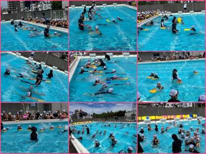1年 プールに入りました!(7/8) 公開日 2024/07/08 更新日 2024/07/08 1年 1年生、久しぶりのプールです!! 顔をつける練習やもぐる練習、ビート板を使って浮く練習、泳ぐ練習をしました。水が苦手でも懸命に頑張る姿や、「白い線まで!」「先生のところまで!」と目標を立ててチャレンジする姿勢に感心しました。 やる気に満ちてたくましい1年生です♪ いいね(0)