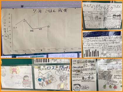 ご飯を食べよう!!(7/12) 公開日 2024/07/12 更新日 2024/07/12 お知らせ 給食室前の掲示板には、給食委員会作成の「ごはん」に関するポスターが掲示されています。そして、7月は「白ごはんの残食」についても調べて、グラフに表しています。暑さで食が落ちる時期ではありますが、ごはんの力を知り、できるだけ食べるようにしていきましょう!! いいね(0)