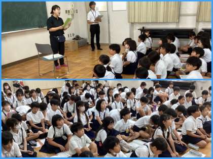 5年生は林間学習に向けての最終学年集会をしていました。これまでの準備、本当によく頑張りましたね。特にナップザックづくりは、初めてのミシンで大変だったと思いますが、見事完成しましたね。頑張った自分を褒めましょう!!