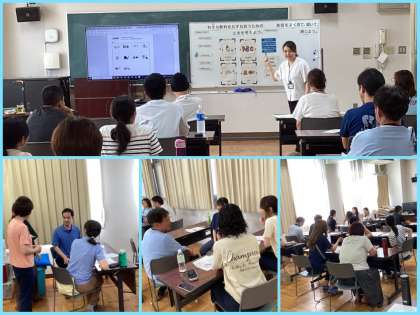 先生たちも勉強中!(7/23) 公開日 2024/07/23 更新日 2024/07/23 お知らせ 夏休み、楽しく過ごしていますか? 1日を計画的に過ごしているでしょうか? 先生たちは、運動会の打ち合わせをしたり、遠足の下見に行ったり…早くも2学期の準備をしています。 今日は「外国語学習指導法」の研修会を行いました。講師先生の質問に表情と身ぶり手ぶりを加えて、元気いっぱい答える先生たちはさすがです!!暑さに負けず、先生たちも勉強に準備に…がんばっています♪ いいね(0)