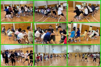 綱引きは学級対抗戦、それ以外は活動班対抗戦で行いました。綱引きは担任の応援も白熱!!競技も応援も大盛り上がりでした。