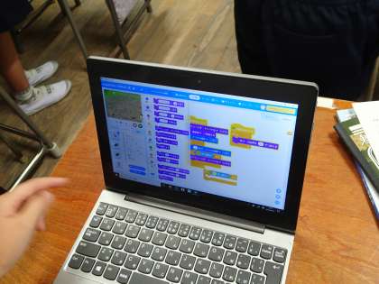 理科の学習から発展させて、プログラミング学習をしました。みんな一言一言を大切に考えながら、自分なりのプログラムを完成させていましたよ。