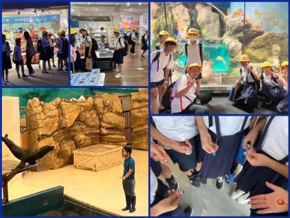 6年 修学旅行その6(9/18) 公開日 2024/09/18 更新日 2024/09/18 6年 たっぷりと海の生き物たちの観察をして…鳥羽水族館とのお別れの時間が迫ってきました。 5分前集合、できているかな??次は…「シーグラスづくり」です!! いいね(0)