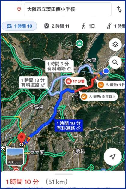 6年 修学旅行その26(9/19) 公開日 2024/09/19 更新日 2024/09/19 6年 草津PAを15:40に出発しました。 出発直後、渋滞にはまったようです。。。 ナビでは16:50到着と予想されております。 いいね(0)