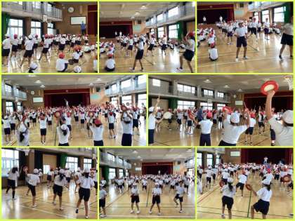 4年 エイサー(9/20) 公開日 2024/09/20 更新日 2024/09/20 4年 運動会に向けての練習が少しずつ始まっています。 4年生の団体演技は「エイサー」 うちわと割りばしでの練習からパーランクの練習へと変わりました!! 音が鳴ると迫力も出て、4年生のかけ声とマッチしています♪ いいね(0)