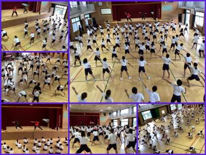 5年生の気合に満ちたかけ声が、新館まで聞こえていました。最初から最後まで踊り切ると汗びっしょり。腰の位置が低いので筋肉痛にもなったことでしょう。しかし…曲が流れると自然に体が動くのはソーラン節の虜になった証拠ですね♪